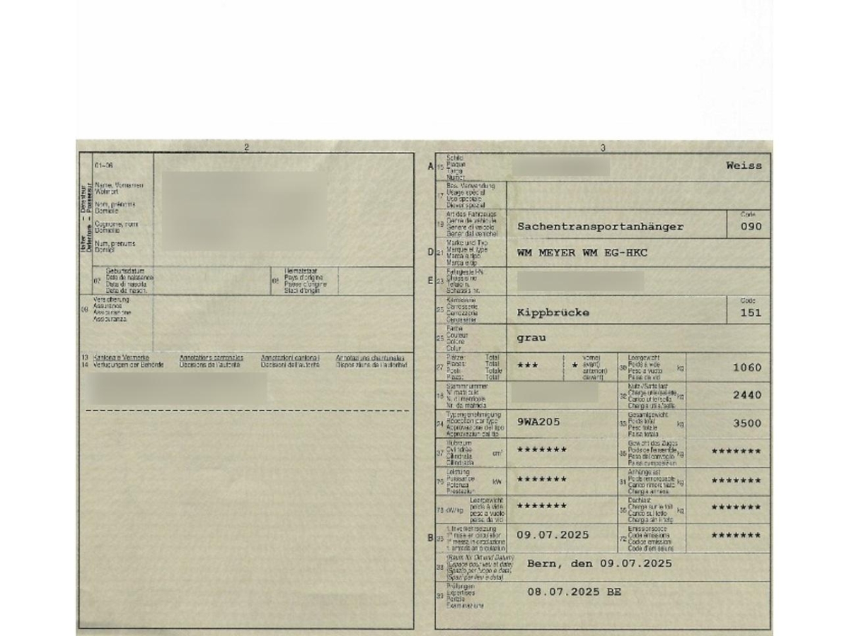 | Fahrzeugausweis | Vorhanden |