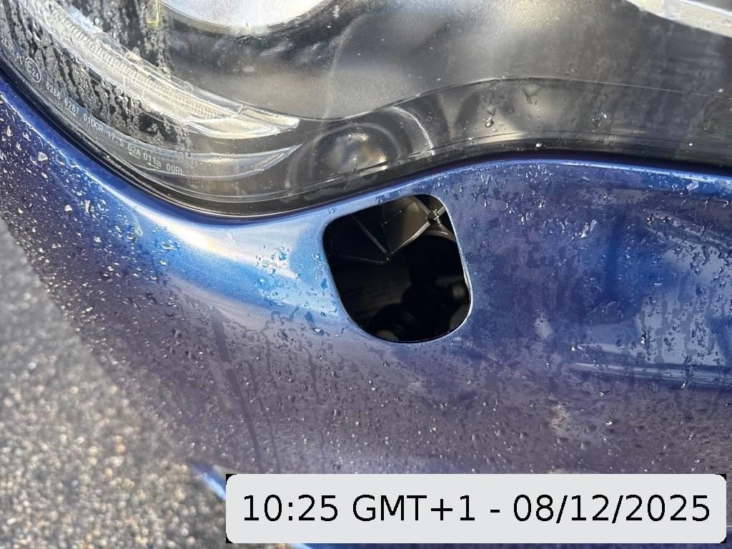 Leichte Beschädigung an der rechten vorderen Stoßstange und beschädigte Scheinwerferwaschanlage rechts vorne.