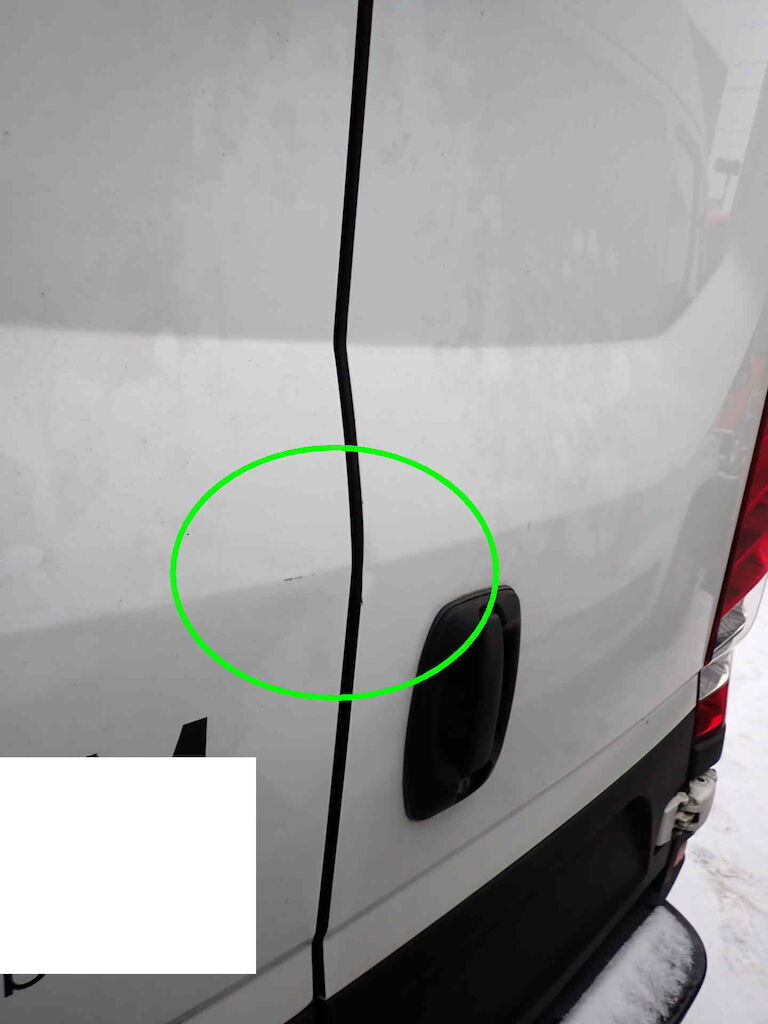 | Grosser Frontschaden Diverse kleinere Gebrauchsspuren rund um das Fahrzeug Vorschäden: Steinschlag Frontscheibe Kratzer Aussenspiegel rechts Kratzer und leichte Delle Seitenwand und Verkleidung hinten links Kratzer und leichte Delle Heckflügeltüren links und rechts | |