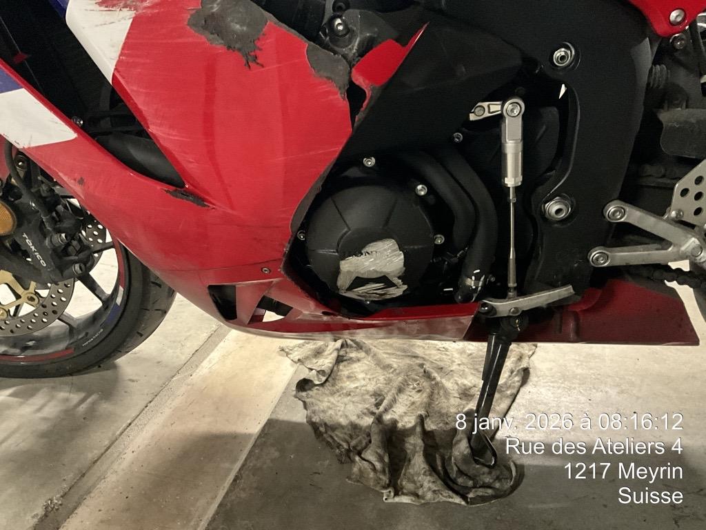 | Schadensbeschreibung | Beschreibung der Schäden: Moteur ne démarre pas Choc latg, carénages cassés Faiceau coupé, fourche et bras oscillant déformé |