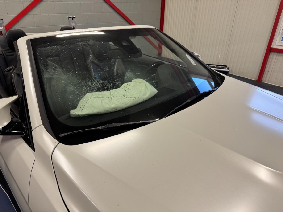 Airbag ausgelöst, Front, Front links, Gurtstraffer ausgelöst, Hinterachse, Kotflügel links, Rad hinten links, Rad vorne links, Radaufhängung hinten links, Radaufhängung vorne links, Schweller links, Seite links, Seitenwand links, Vorderachse, Überrollbügel ausgelöst