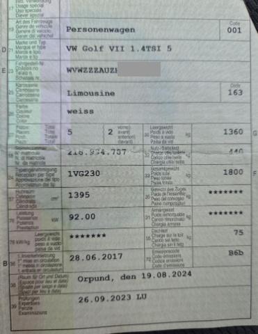 | Typenschein-Nr: | 1VG230 | Letzte MFK: | 26.09.2023 |