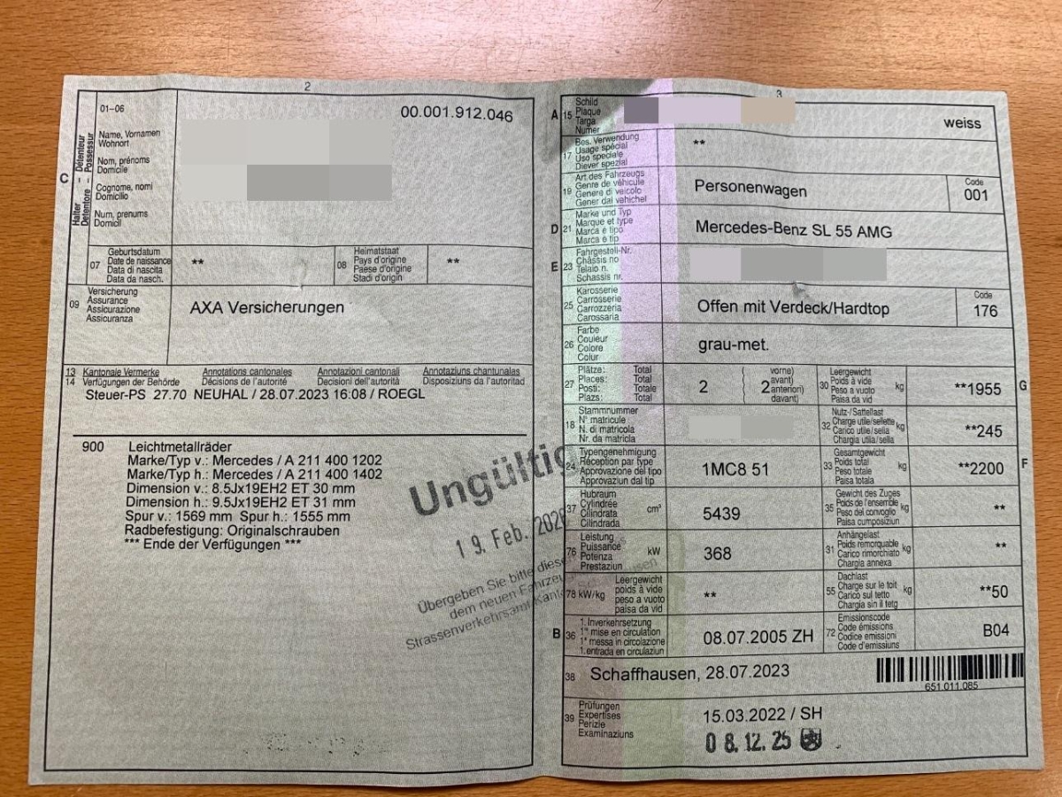| Fahrzeugausweis | Vorhanden |