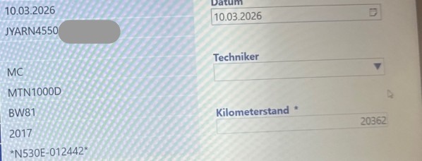 | VIN | JYARN455000****** | Reifenprofil in %: | 55 |