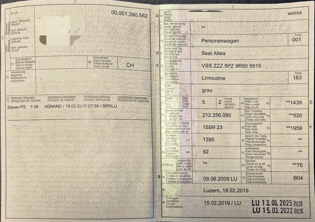 | Koszt naprawy: | 0.00 CHF |