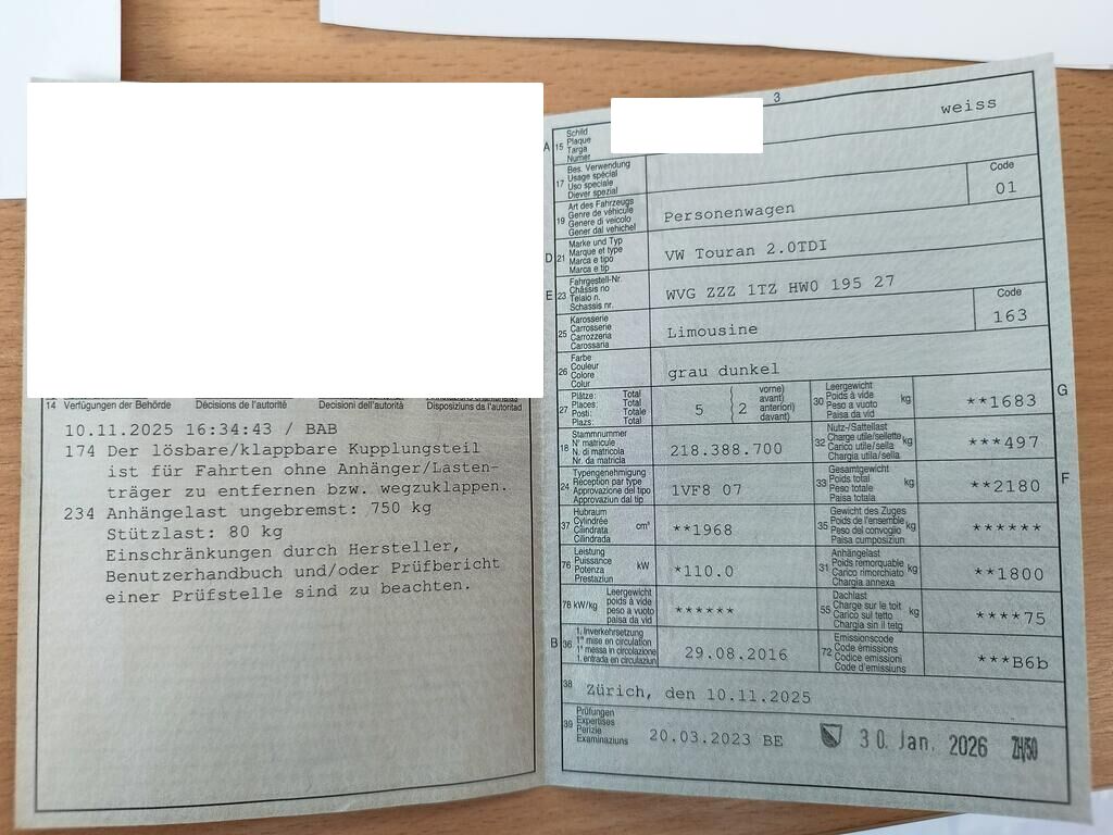| Opony: | Achse 1: L: 7 mm, R: 7 mm, Dimension: 205/60 R16 Winter Achse 2: L: 7 mm, R: 7 mm, Dimension: 205/60 R16 Winter |