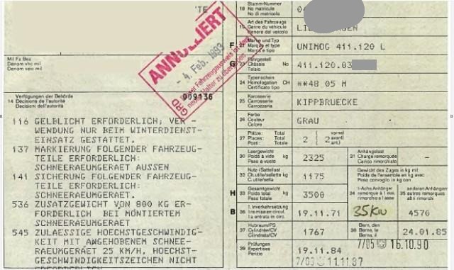 | Typenschein-Nr: | **4805M | Letzte MFK: | 16.10.1990 |