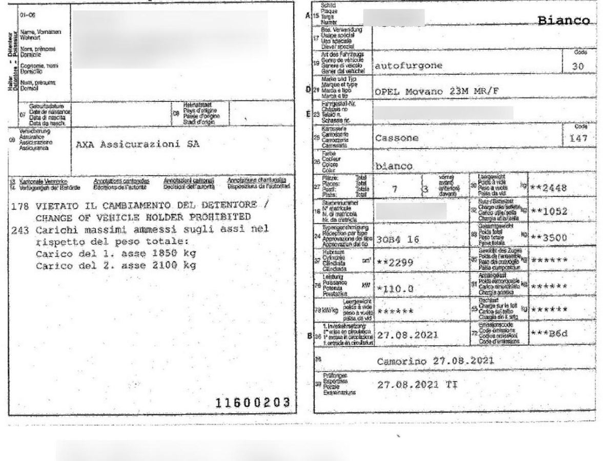 | Fahrzeugausweis | Vorhanden |