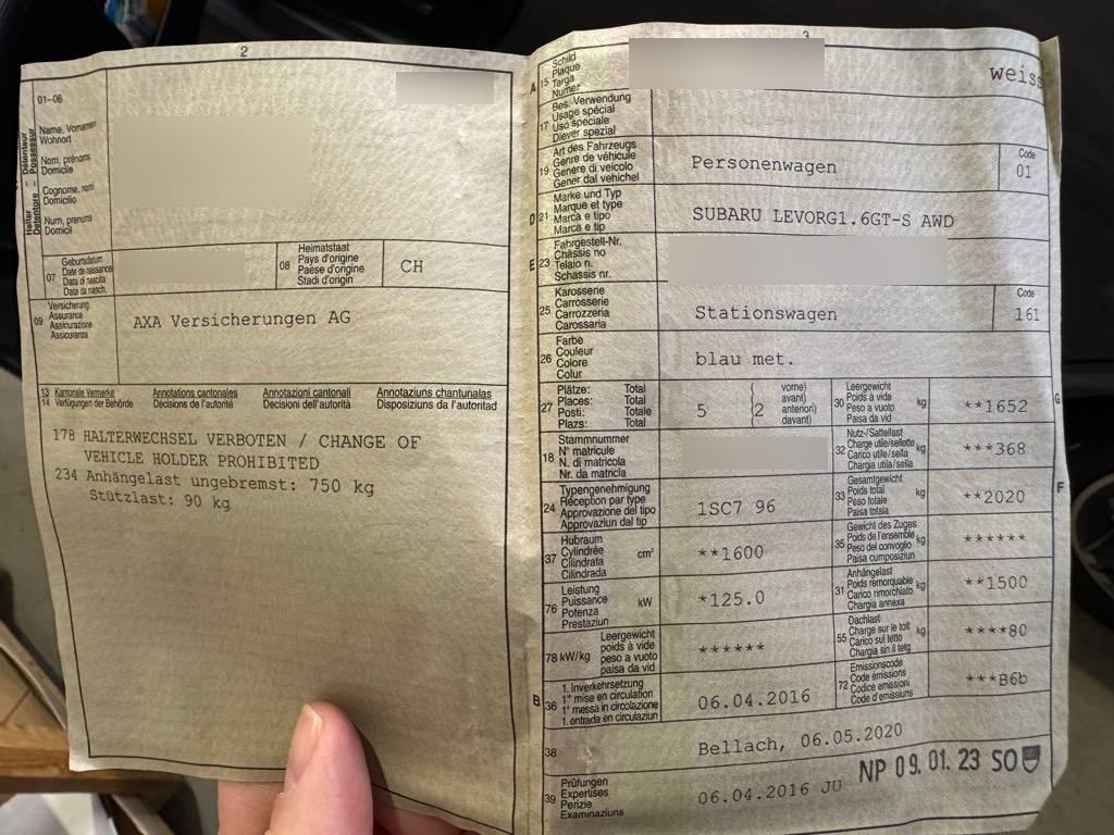 | Fahrzeugausweis | Vorhanden |
