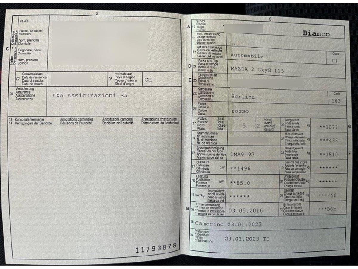 | Fahrzeugausweis | Vorhanden |