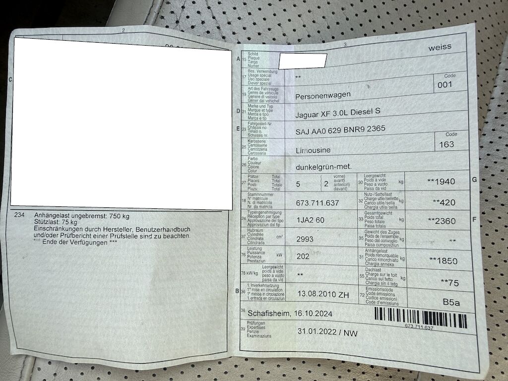 | Model: | XF 3.0 V6 Diesel |