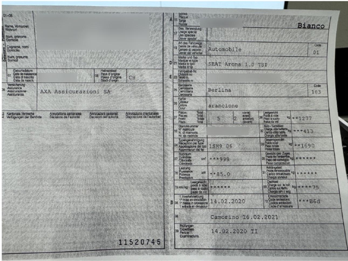 | Fahrzeugausweis | Vorhanden |